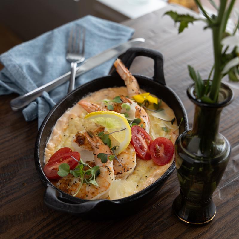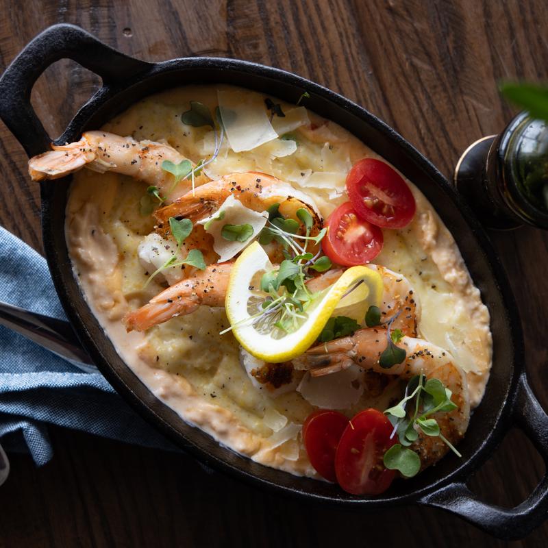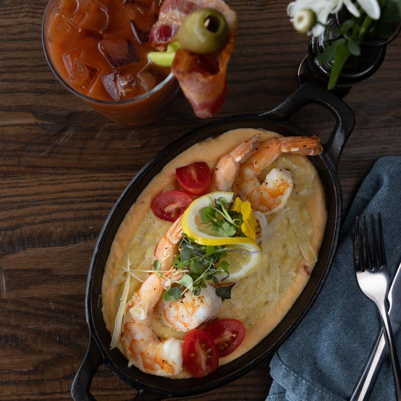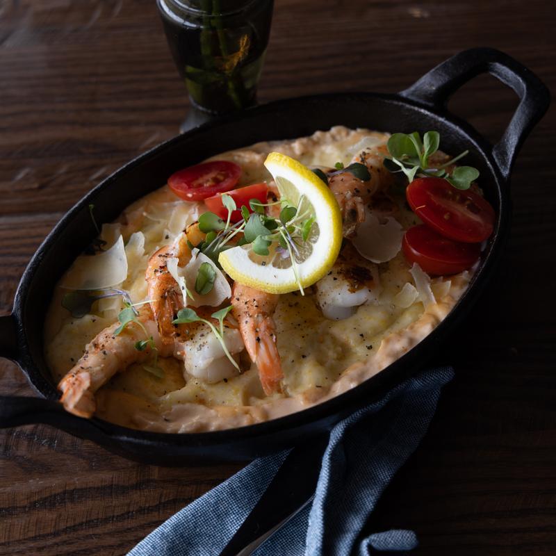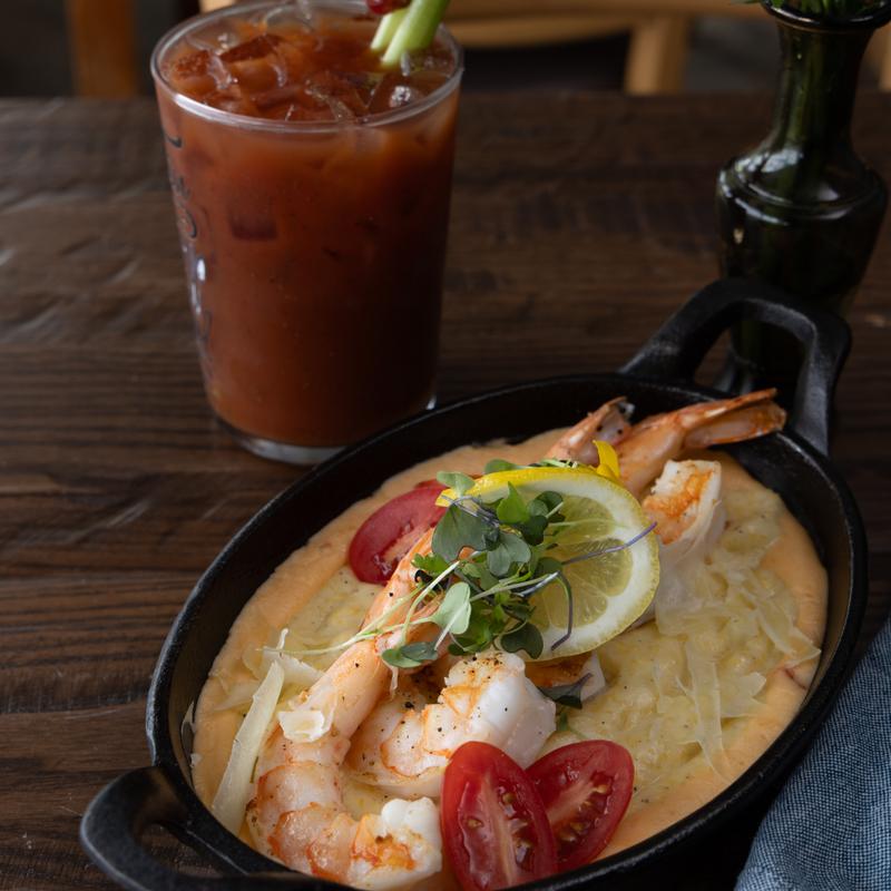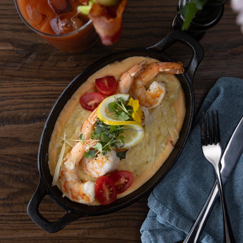 Has the shrimp and grits and it was hot and delicious and came out quickly. Service was super-friendly. Highly recommended!